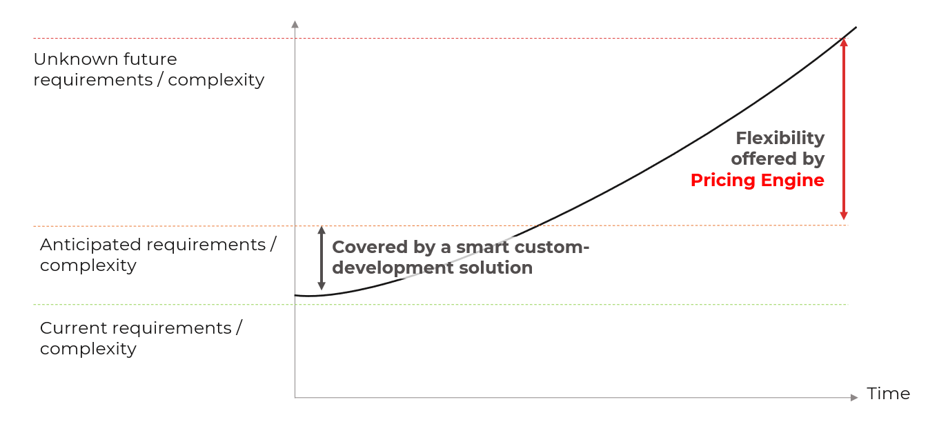 The Pricing Engine removes this ever increasing complexity, instead utilising built-in flexibility to solve future requirements without the need for custom developments.